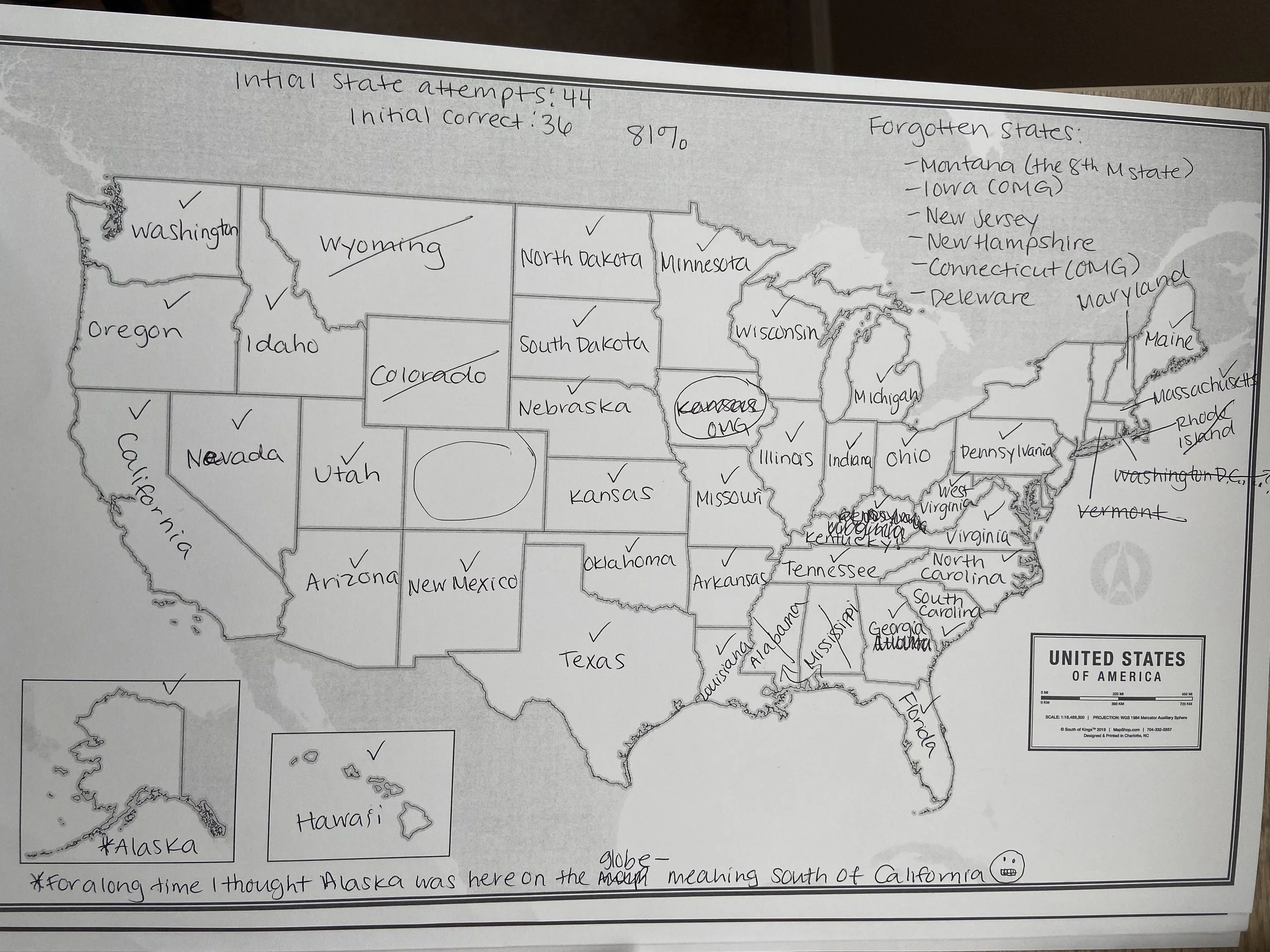 There is nothing that embarrasses me quite as much as my lack of geographical knowledge. I started with a U.S. map, which earned me an 81% (technically not failing, but still really really embarrassing that I blanked out on Iowa, where my dad’s side of the family lives and I’ve visited many times, and totally forgot about Connecticut where I was born. Not to mention some other embarrassing mislabels). Then I faced the world map, which earned me 15/195 countries —> 7.6%, solidly counting as an epic fail).