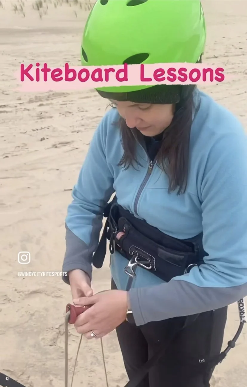 So if moving was not an option, nor spending a large sum of time or money on travel, I decided there must be something I could do right here and right now to put myself back into my body, learn a new skill, and capture that exhilarating, joyful freeness. We don’t have an ocean by Chicago, but we do have a great big lake, so certainly there must be something I could do in the world of water sports. Suddenly kiteboarding popped into my head out of nowhere, and I googled if there was anything like that in Chicago. Jackpot. I found a whole kiteboarding school! After about six or seven hours of googling everything related to kiteboarding (on lakes vs. oceans, on the best female kiteboarders, on the history of kiteboarding, on its upcoming debut in the Paris Olympics), I was officially obsessed and would do almost anything to ride.